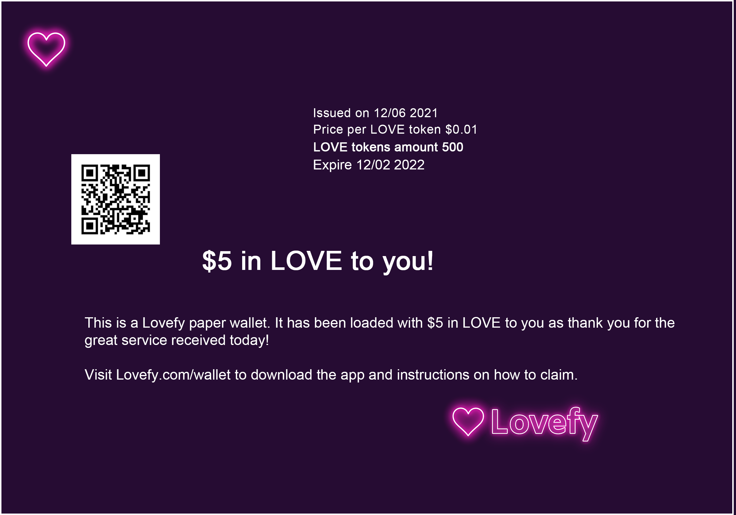 In layman's terms, the Lovefy wallet will enable users to send LOVE permissionless in any monetary value or currency, through wallet addresses and QR codes on social media and ecommerce; this includes, but are not limited to, Instagram, Facebook, Snapchat etc. or streaming services such as YouTube, Twitch etc. LOVE can be sent, received, earned, spent, staked or saved in the Lovefy wallet or in any other official cryptocurrency wallets. The Love.io protocol is utilizing blockchain technology and creating an exchange ability across social media platforms and through the interchangeability into any world fiat currency via built in AMM Swap functionality of the LOVE token.